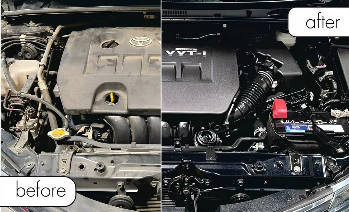 Sau khi sử dụng, khoang máy thường nóng lên đến 90 – 100°C. Vệ sinh ngay có thể gây sốc nhiệt cho các chi tiết cao su, nhựa hoặc gây bỏng. Các bạn nên mở nắp capo và đợi ít nhất 10–20 phút trước khi bắt đầu làm sạch.