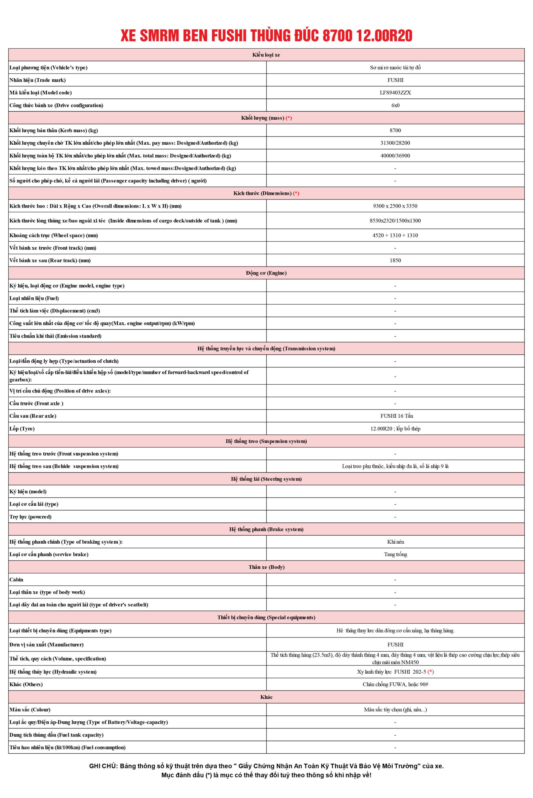 The 8700 FUSHI U-Shape Dump Semi-Trailer – 8.7 Tons equipped with 12.00R20 tires is a trailer developed specifically for transporting heavy materials such as soil, rocks, sand, ore, and large volumes of construction materials.