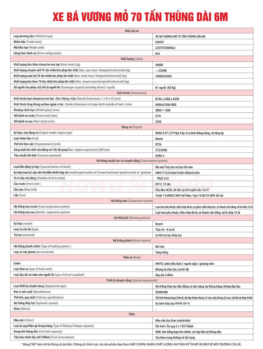 The 70-ton Mining King Dump Truck with a 6-meter dump box is essentially a dump truck, but with dimensions that exceed the limits permitted under Vietnamese road traffic regulations.