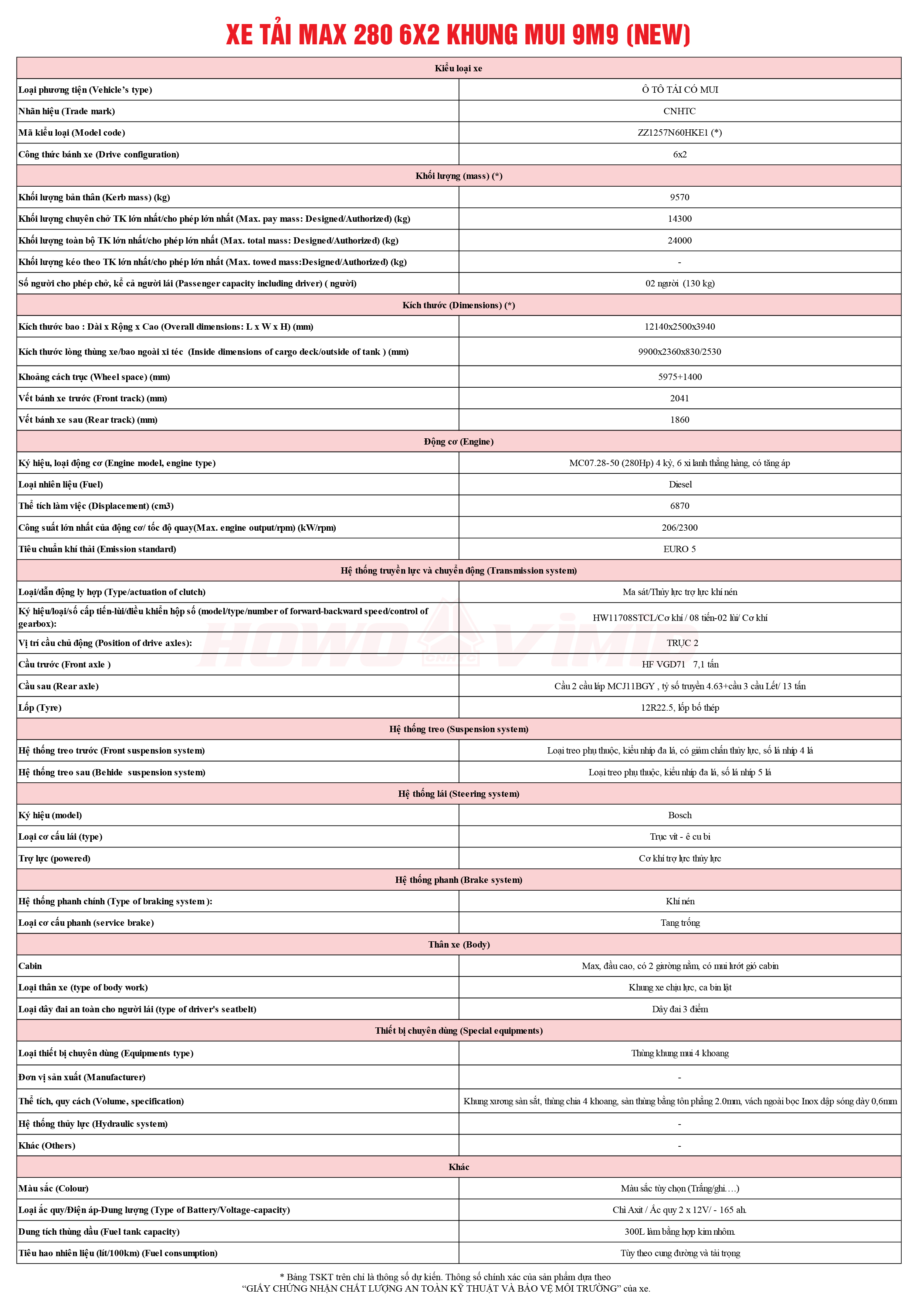 The MAX 280 6X2 Cargo Truck- Tarpaulin Frame (9.9m) is equipped with a powerful and durable engine system: