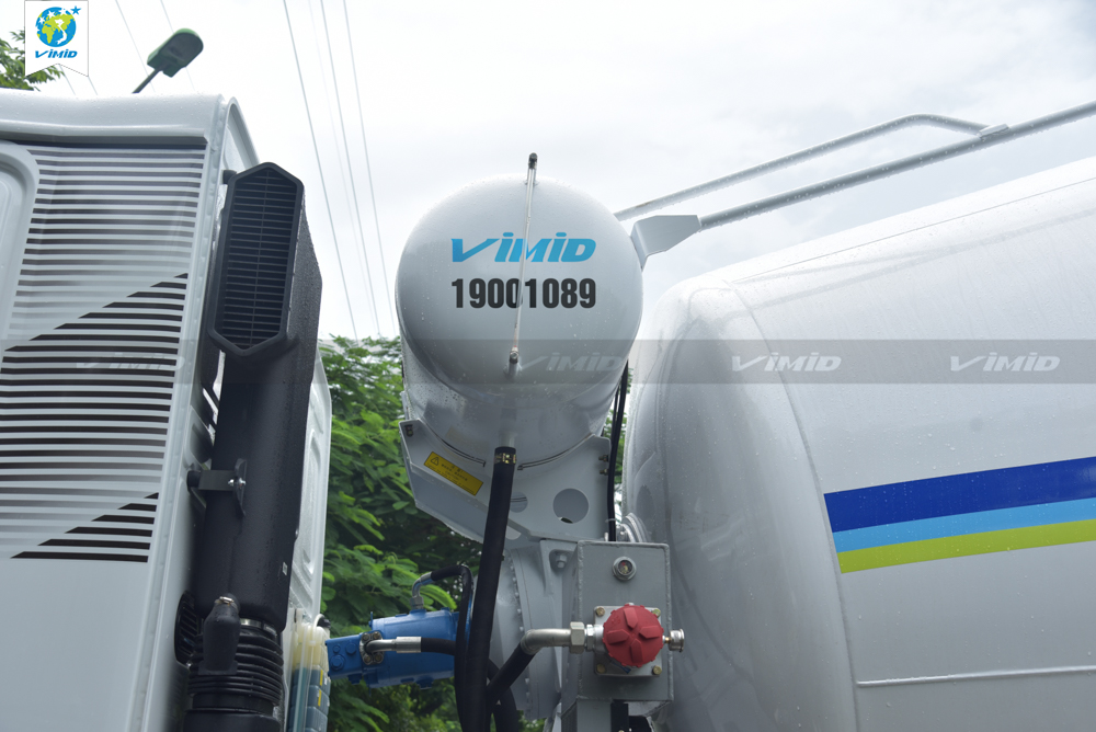 The V7X 380 12m³ Concrete Mixer Truck is also equipped with a wet air filter for the intake system before air enters the engine. This wet filter improves engine performance and environmental protection in several ways: