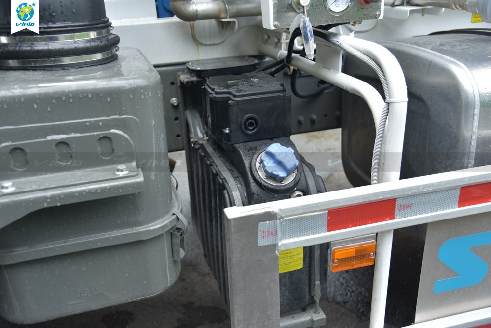 The V7X mixer truck uses a highly reliable hydraulic system, including a PMP reducer gearbox and an Eaton hydraulic pump.