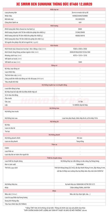 SOLID STRUCTURE – OPTIMIZED PERFORMANCE In the construction materials and mining transport industry, owning a high-quality dump semi-trailer is a key factor determining work efficiency. The SUNHUNK Dump Semi-Trailer (Curb Weight: 8,460 kg), offering a payload capacity of up to 28.5 tons, equipped with a powerful SUNHUNK HCTM 202-5 hydraulic cylinder and durable 12.00R20 steel-belted […]