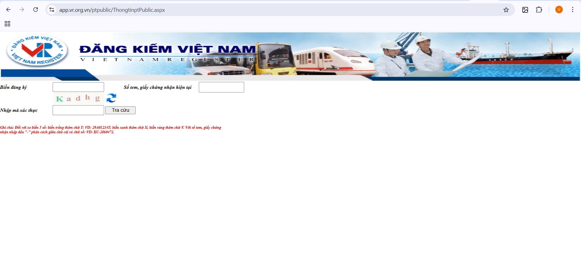Nhập đúng định dạng biển số: Đặc biệt chú ý khi tra cứu trên trang Đăng kiểm (thêm T, X, V).