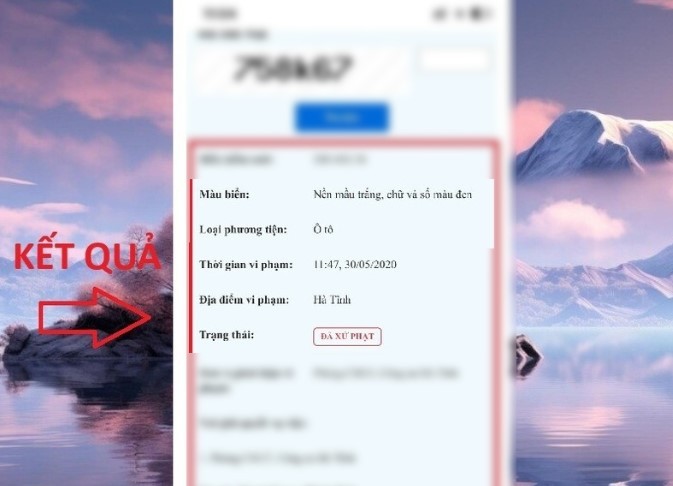 Trường hợp 2: Nếu có vi phạm, hệ thống sẽ hiển thị chi tiết: Thời gian, địa điểm vi phạm, lỗi vi phạm, đơn vị phát hiện và số điện thoại liên hệ xử lý.