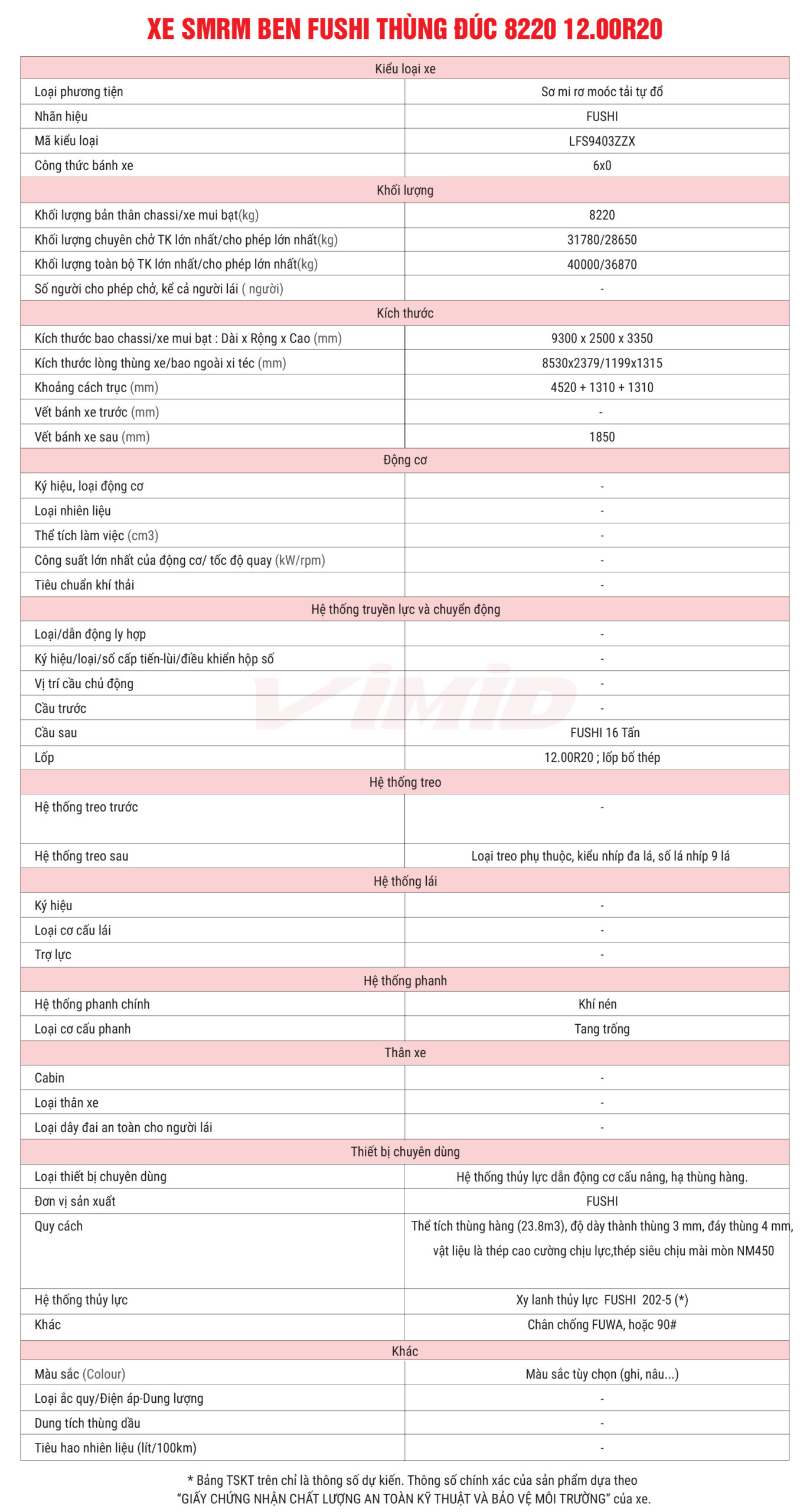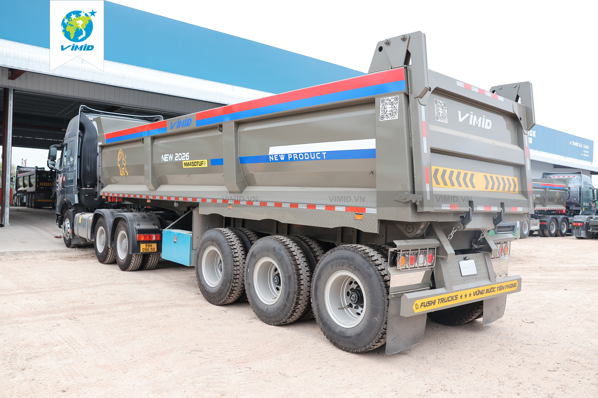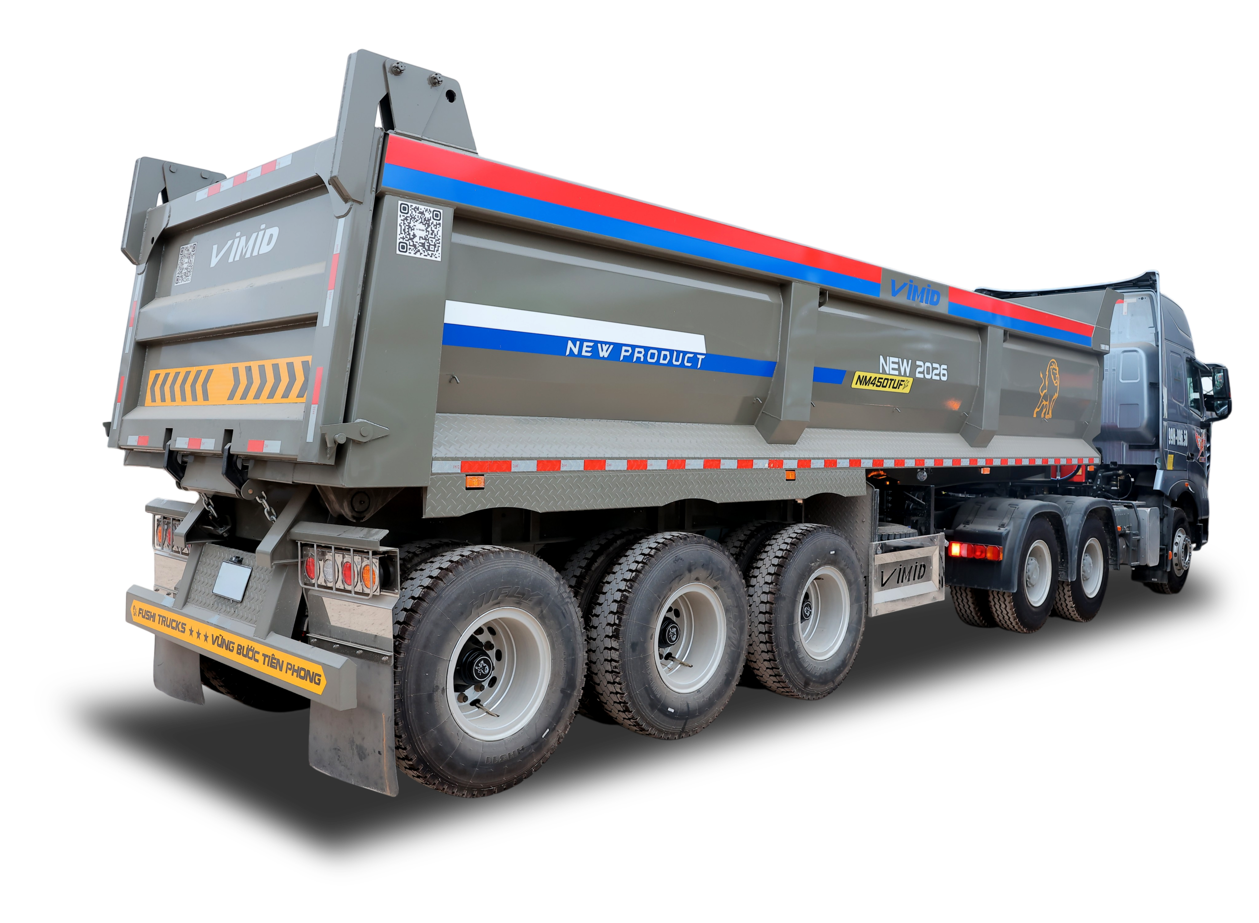 Sơ mi rơ moóc ben FUSHI thùng đúc 8220kg với trang bị lốp 12.00R20 là sản phẩm mới do VIMID và FUSHI phối hợp cùng nghiên cứu thiết kế, với ngoại quan đẹp, kết cấu chắc chắn và có những cải tiến vượt trội, khả năng chịu tải lớn, chở tải cao phục vụ nhu cầu vận chuyển hàng hóa, chở vật liệu nặng như đất, đá, cát, quặng hay các loại vật liệu xây dựng số lượng lớn. Thiết kế thùng rộng, kết cấu khung chắc khỏe cùng khả năng chịu tải ấn tượng giúp Xe SMRM ben FUSHI 12.00R20 8220Kg trở thành lựa chọn đáng đầu tư cho khách hàng đang tìm một mẫu mooc ben bền bỉ, mạnh mẽ và vận hành ổn định trong thời gian dài.