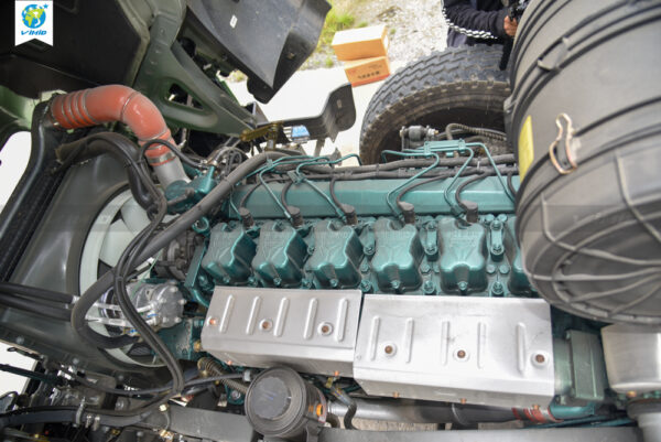 Xe ben V7X 380 6X4 thùng vuông được trang bị thêm bộ lọc ướt cho khí nạp trước khi vào động cơ. Bầu lọc ướt mang lại nhiều hiệu quả về hiệu suất hoạt động của động cơ xe và môi trường như: