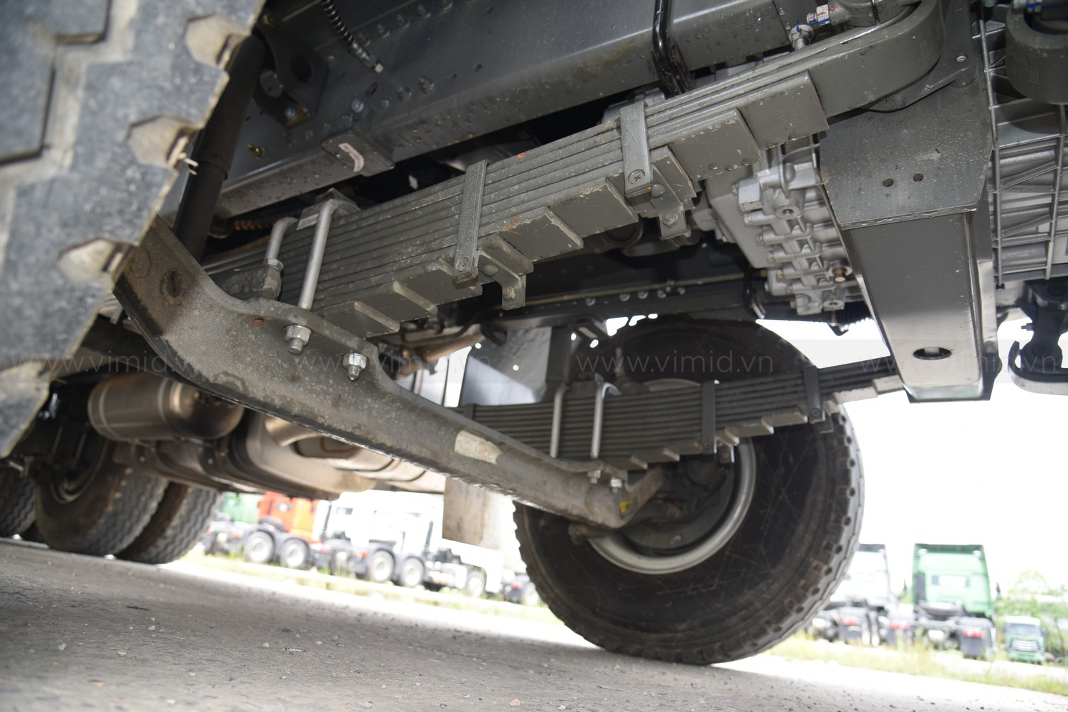 Cầu sau là loại nhíp 12 lá, quang nhíp đôi, loại bu lông quang nhíp dưới thuận tiện cho sửa chữa.