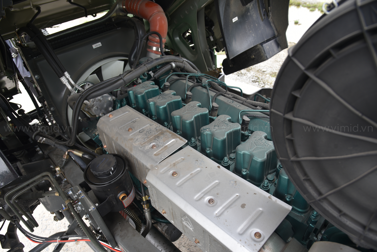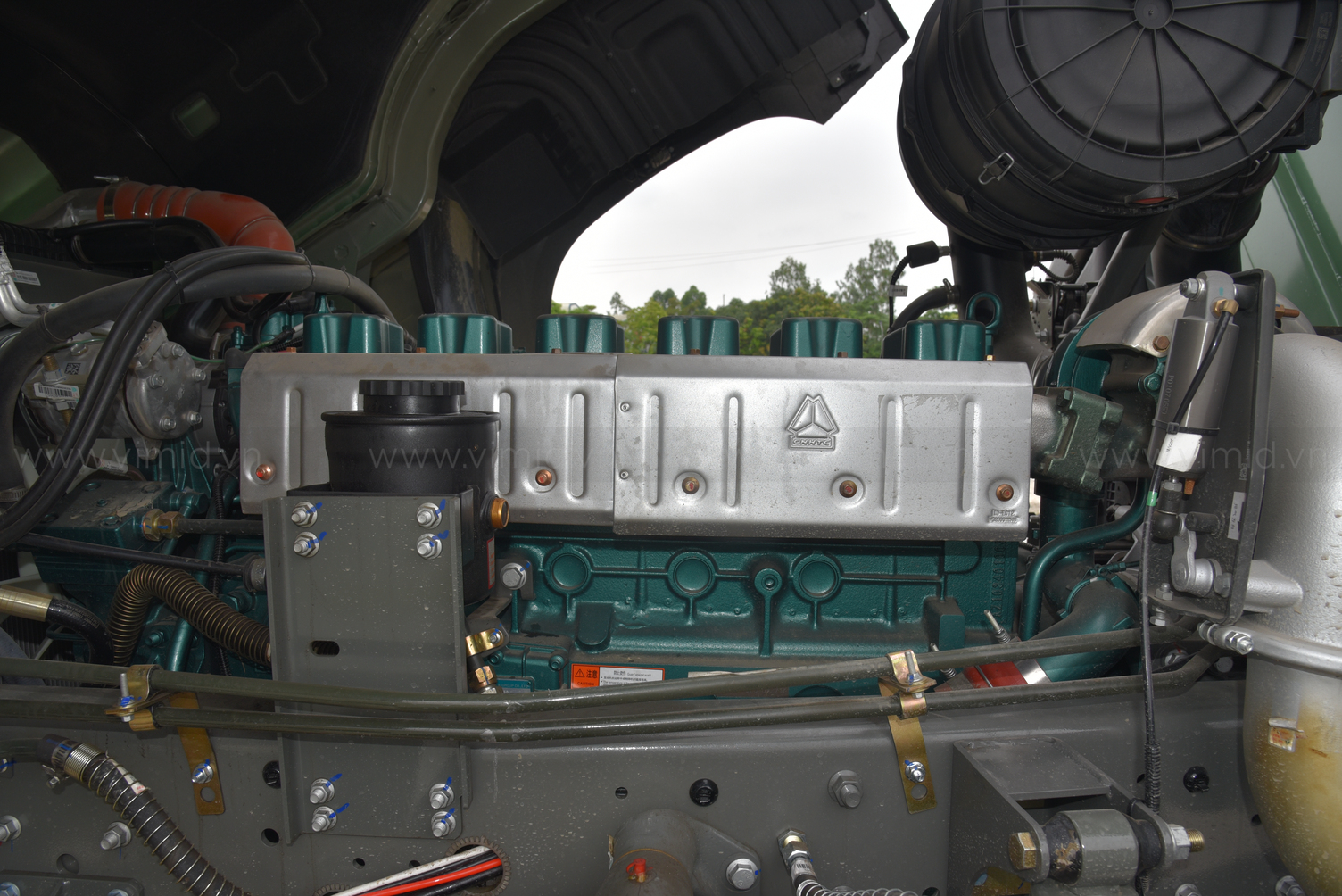 Xe ben V7X 380 8X4 thùng đúc được trang bị thêm bộ lọc ướt cho khí nạp trước khi vào động cơ. Bầu lọc ướt mang lại nhiều hiệu quả về hiệu suất hoạt động của động cơ xe và môi trường như: