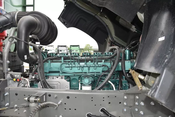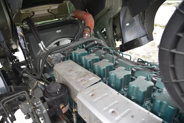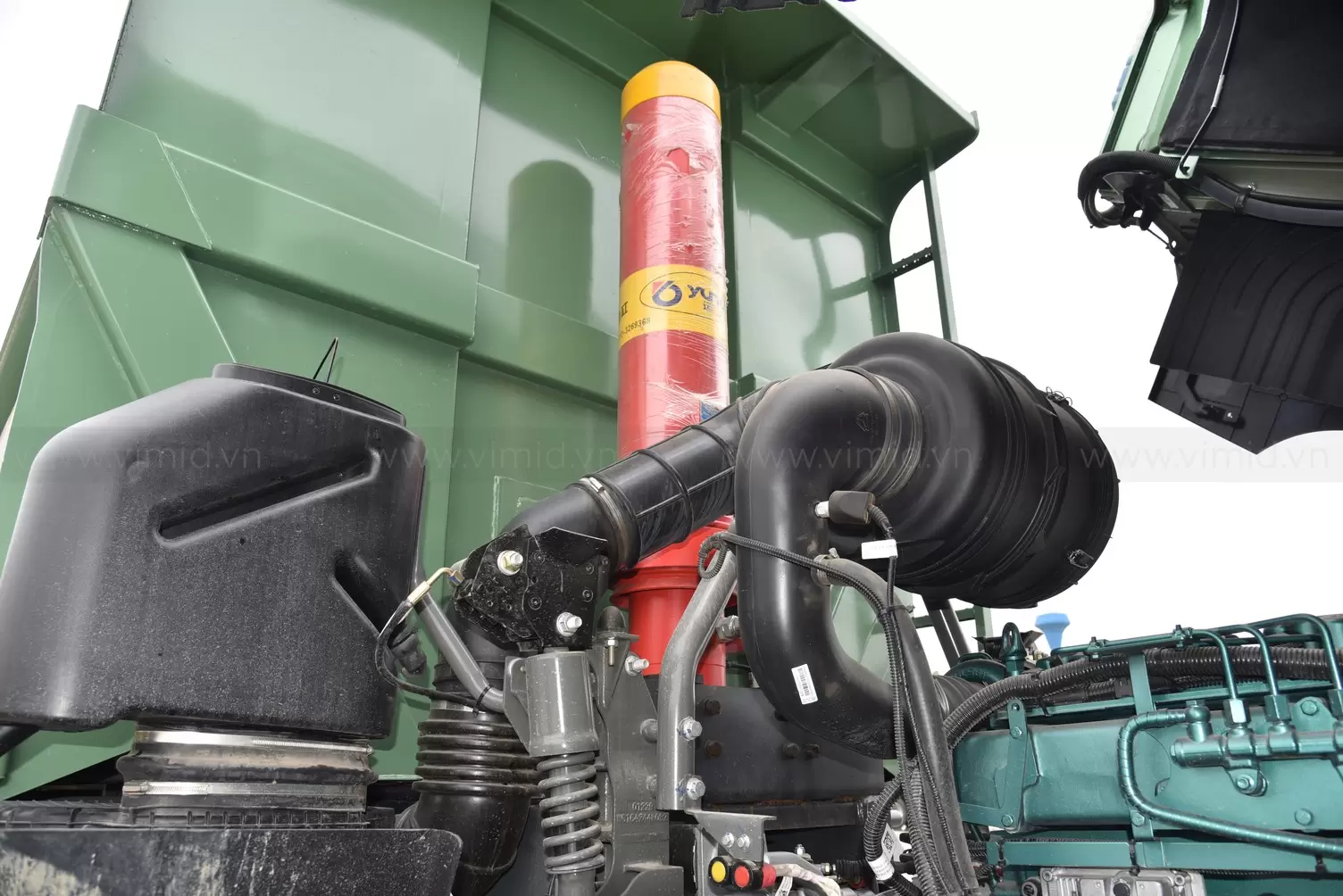 Xe ben V7X 380 8X4 thùng đúc được trang bị thêm bộ lọc ướt cho khí nạp trước khi vào động cơ. Bầu lọc ướt mang lại nhiều hiệu quả về hiệu suất hoạt động của động cơ xe và môi trường như:
