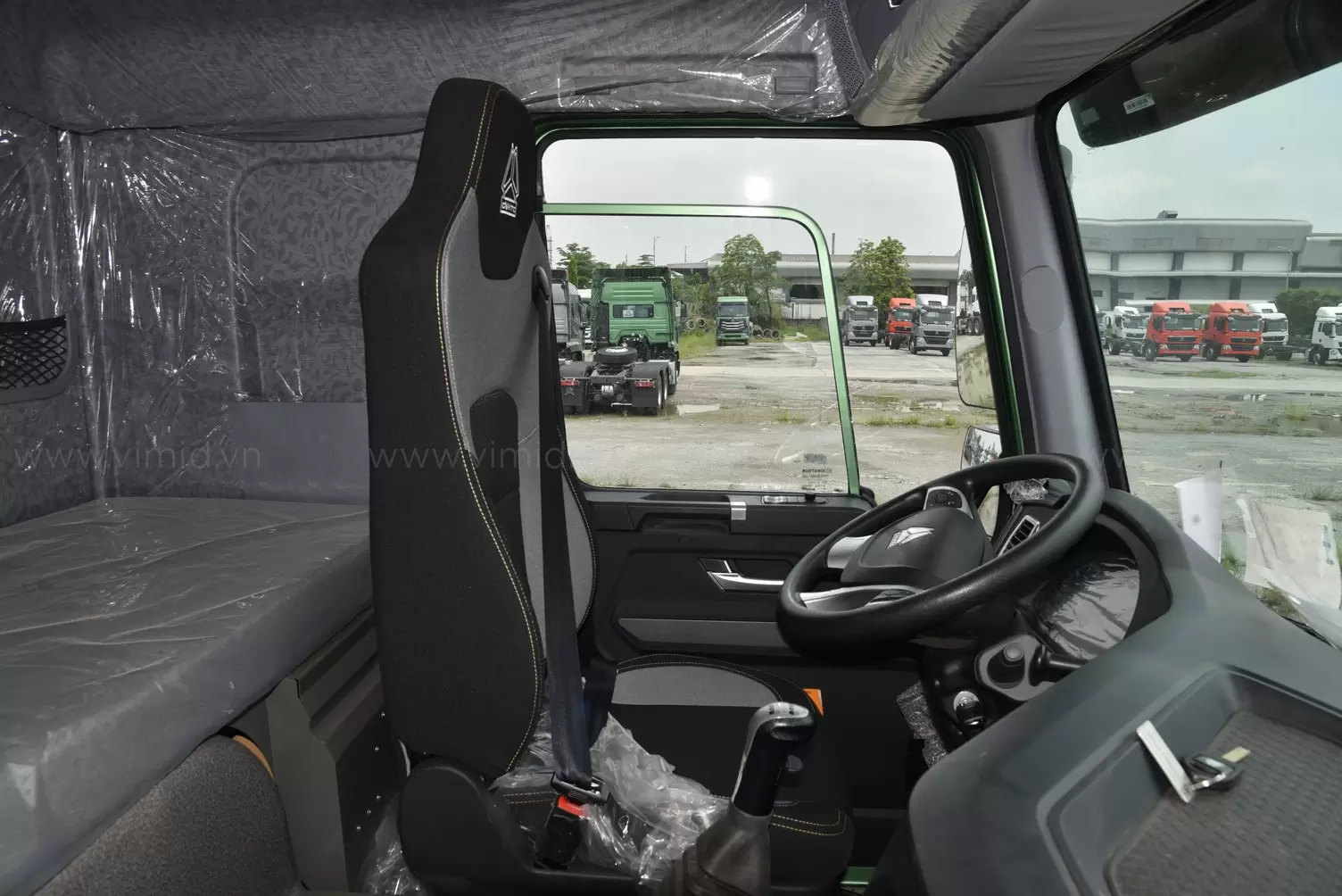 Xe sở hữu mặt ga lăng được thiết kế lại hài hoà, ngoại quan mới đẹp và khoẻ khoắn hơn các dòng ben HOWO trước đó tại thị trường Việt Nam. Cabin V7-X là phiên bản nâng cấp mới nhất, được thừa hưởng nhiều đặc điểm và thiết kế dựa trên công nghệ an toàn cabin của VOLVO. Cabin được chế tạo tinh xảo, cứng cáp và chắc chắn. Tầm nhìn được mở rộng hơn, tạo sự an toàn cao cho lái xe khi vận hành.