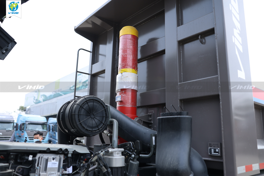 Xe ben V7X 400 8X4 thùng vuông được trang bị thêm bộ lọc ướt cho khí nạp trước khi vào động cơ. Bầu lọc ướt mang lại nhiều hiệu quả về hiệu suất hoạt động của động cơ xe và môi trường như: