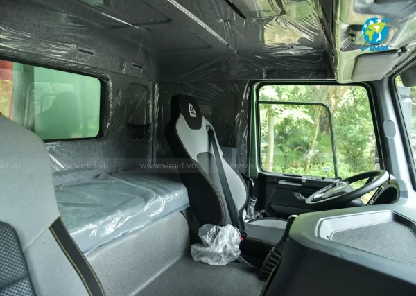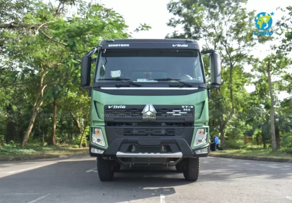 Xe ben V7-X là sự kết hợp đỉnh cao giữa 3 thương hiệu lớn hàng đầu thế giới: VOLVO, MAN và SINOTRUK. Cabin đầu thấp 1 giường nằm thiết kế đẹp mắt, được chế tạo theo tiêu chuẩn công nghệ MAN - ĐỨC cho các đường nét chế tạo tinh xảo, cứng rắn, an toàn trong quá trình vận hành.