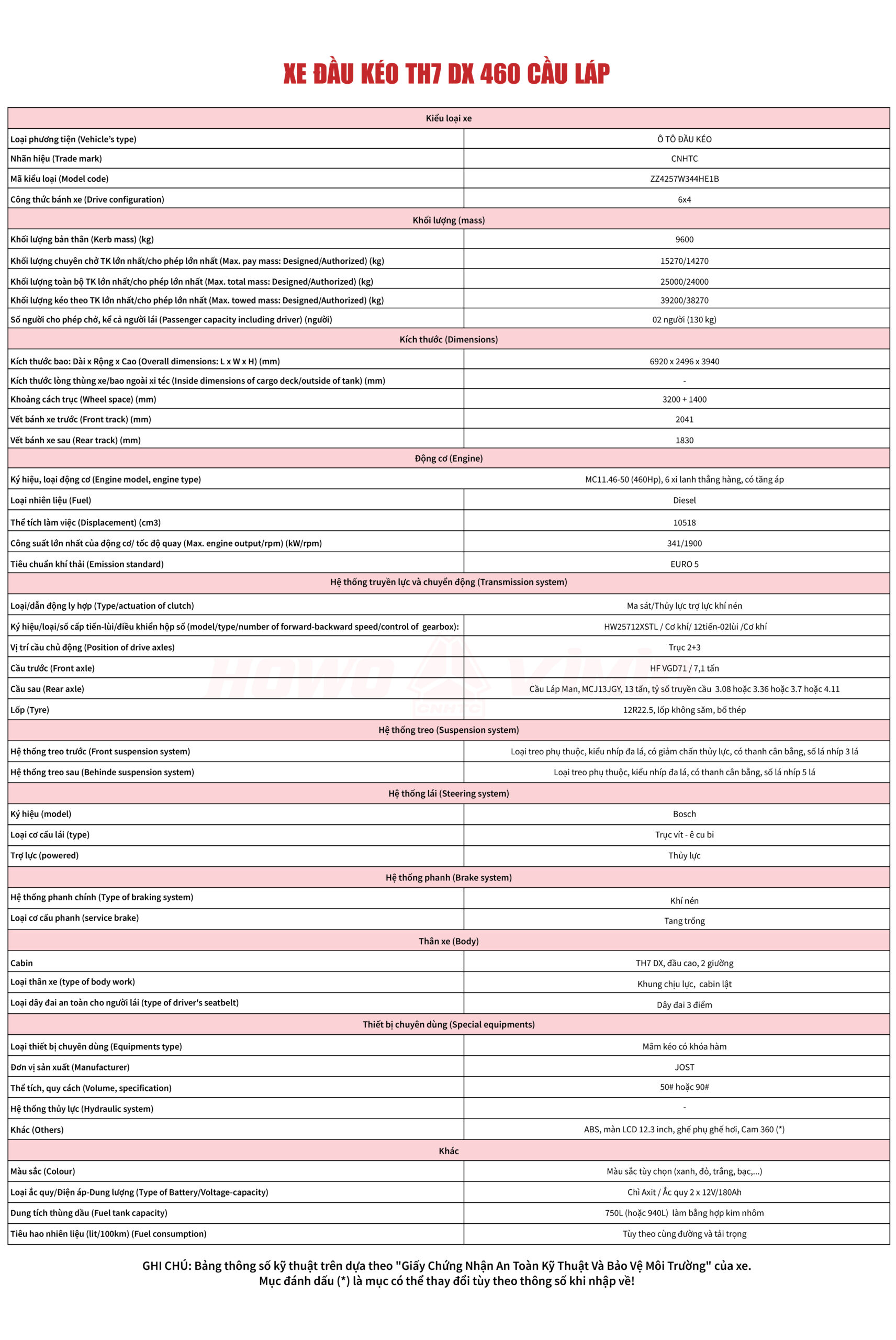 Hệ thống khác xe đầu kéo TH7 DX 460 cầu láp