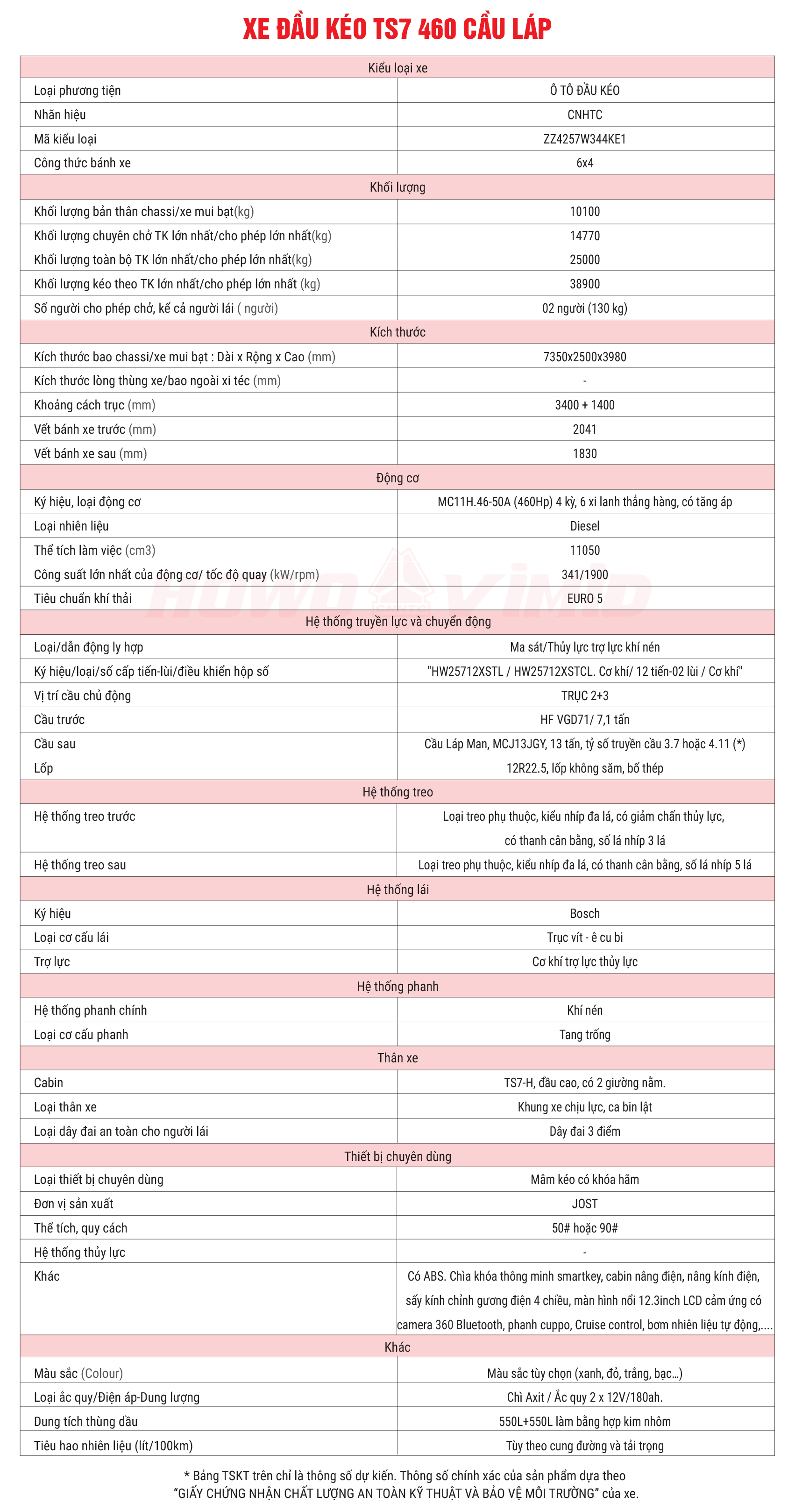Xe đầu kéo TS7-H 460 cầu láp thực sự là một lựa chọn đáng cân nhắc trong phân khúc xe đầu kéo công suất lớn. Với thiết kế mới mẻ, hiện đại, cabin tiện nghi, động cơ mạnh mẽ, hệ thống truyền động cầu láp bền bỉ và các tính năng an toàn vượt trội, mẫu xe này không chỉ đáp ứng tốt nhu cầu vận tải nặng mà còn mang lại hiệu quả kinh tế cao và trải nghiệm lái xe tuyệt vời.