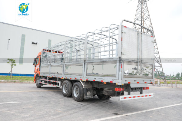 - Hệ thống treo: Phía trước là loại Phụ thuộc, nhíp lá, giảm chấn thủy lực, kết hợp với phía sau là loại Phụ thuộc, nhíp lá, đảm bảo khả năng chịu tải tốt và độ ổn định cao khi xe chở nặng.