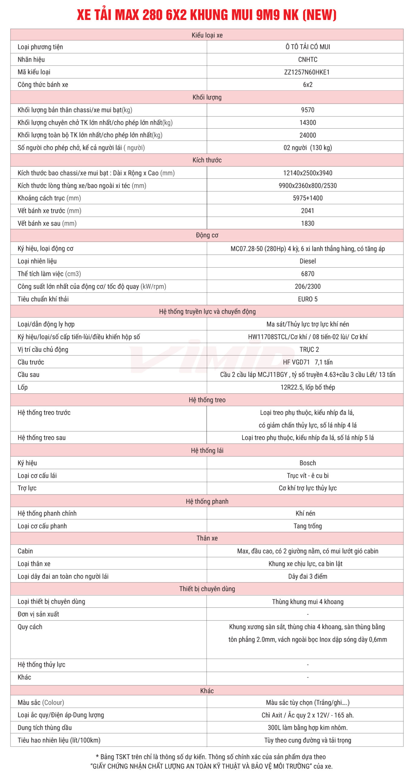 Ngoài các thông số kỹ thuật ấn tượng, XE TẢI MAX 280 6X2 KHUNG MUI NHẬP KHẨU 9M9 còn được trang bị: