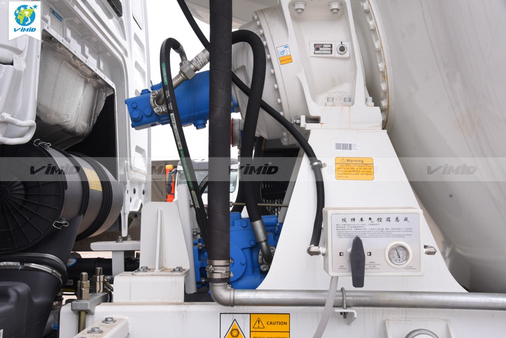 Xe được trang bị thùng trộn dung tích 10m3, đáp ứng nhu cầu vận chuyển bê tông cho các dự án xây dựng quy mô lớn