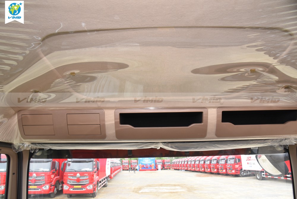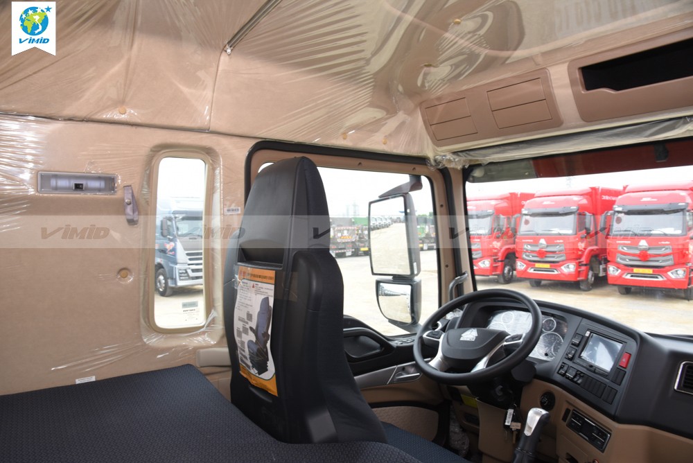 Không gian cabin rộng rãi với 1 giường nằm phía sau, giúp tài xế có thể nghỉ ngơi khi phải làm việc liên tục tại công trình hoặc di chuyển đường dài.
